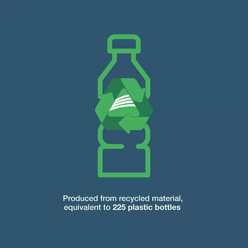 Manufactured from the equivalent of 225 Plastic Bottles