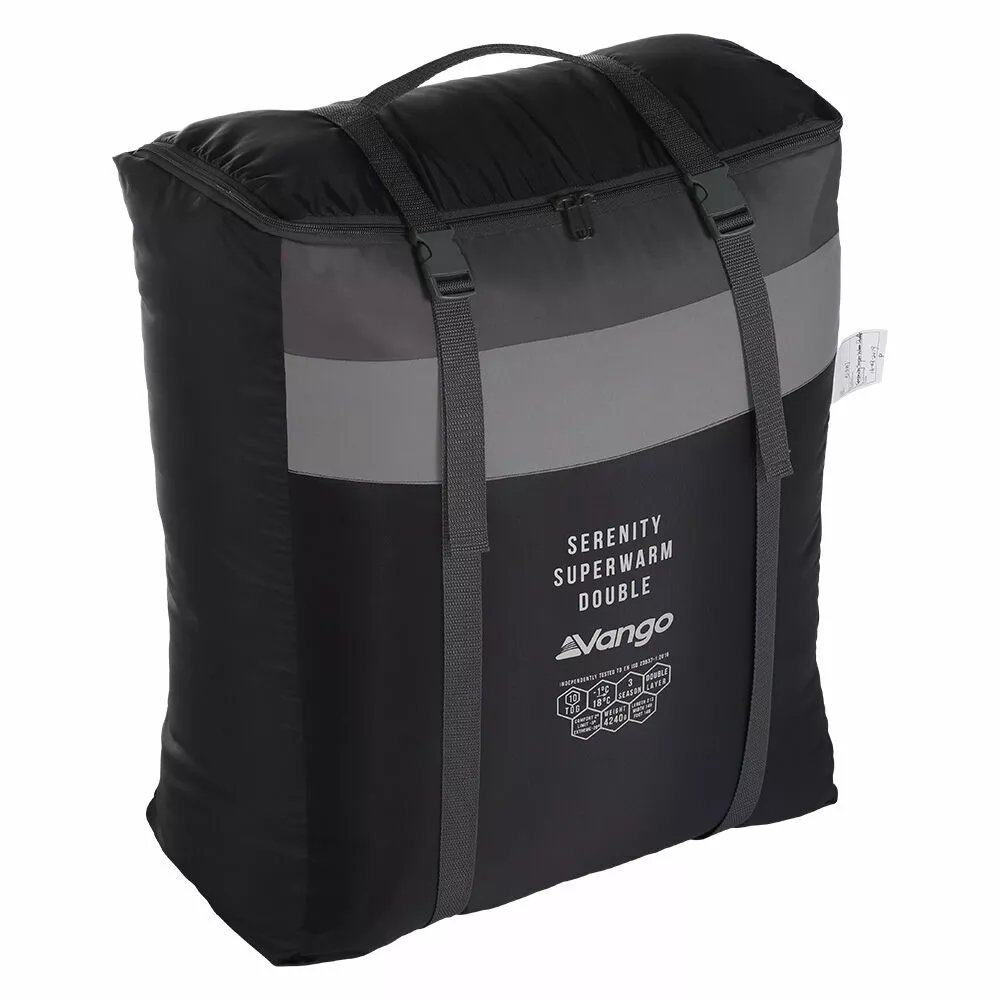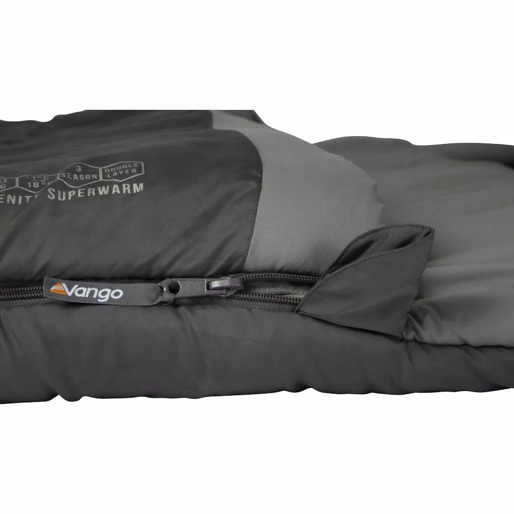 The Vango Serenity Superwarm Double is a three-season sleeping bag with good quality double layer insulation. The bag features a square shape for extra leg space and an integrated headrest for extra comfort. A brushed polyester interior ensures a relatively warm feel. A raft of other features introduce plenty of quality Vango innovations to this bag to make it an excellent choice for a comfortable camping trip from spring through to autumn.